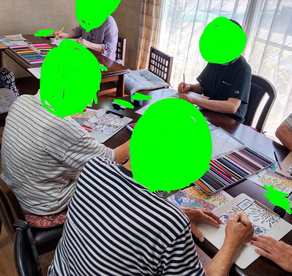 ※写真は今月のぬり絵教室の様子です