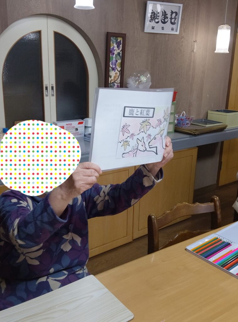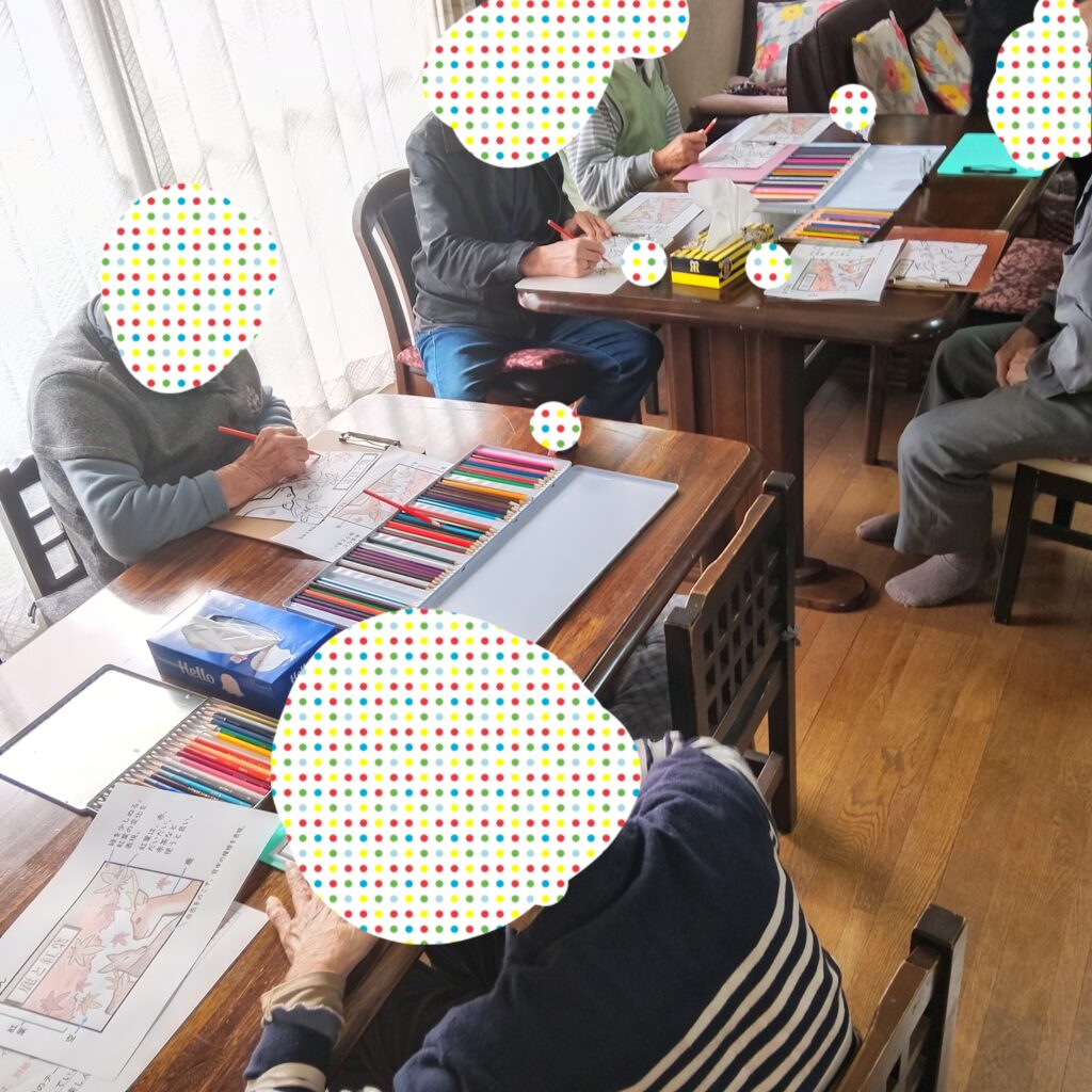 先日、海南市の自己意欲向上型デイサービス「ケアチーム大河」様にて、月に1度のぬり絵教室がありました!